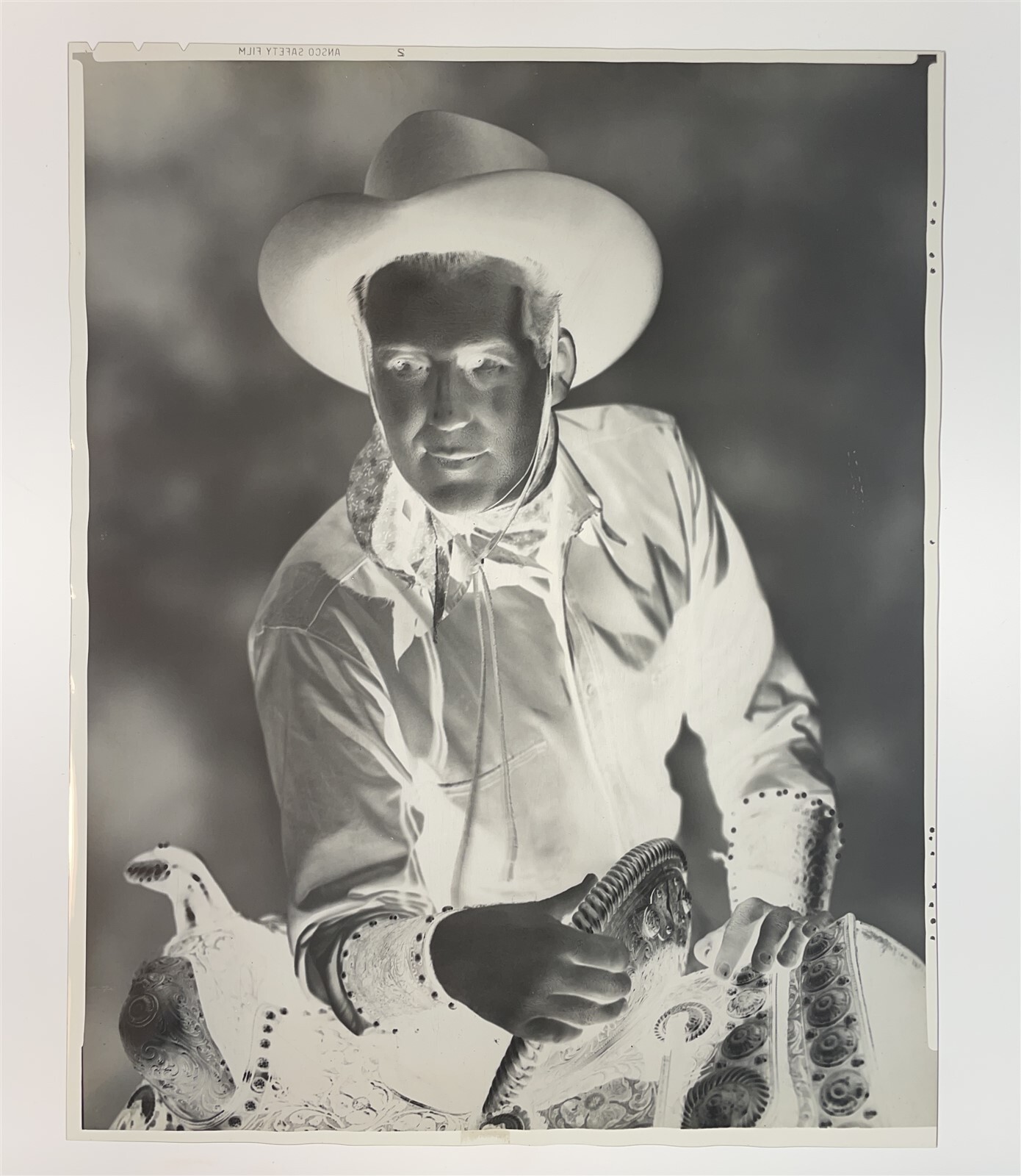 Dick Foran Western Photo Shoot 1940's Vintage Studio 8x10 Negative This is a vintage studio or photographer's 8x10 inch black and white photographic negative from that was from the famed Marvin Paige Motion Picture and Television Research Archive. Marvin Paige was a renowned Hollywood casting agent who had worked on such productions as 'Breakfast at Tiffany's and 'Planet of the Apes' and a film historian who had amassed a huge archive of movie and television images and memorabilia . This vintage negative was created from the original camera negative by the studio or photographer in order to make prints and use for publications. This is a real collector's item and would make superb quality photographs or prints. This would also be a great addition to any collection or image archive. This black and white photographic negative is in Excellent condition. This collector's item is being sold from one collector to another, no rights are given or implied. Silver Screen Mementos are gradually releasing from their vast archives thousands of original photographs, transparencies, negatives, slides, lobby cards and other movie or television memorabilia.
