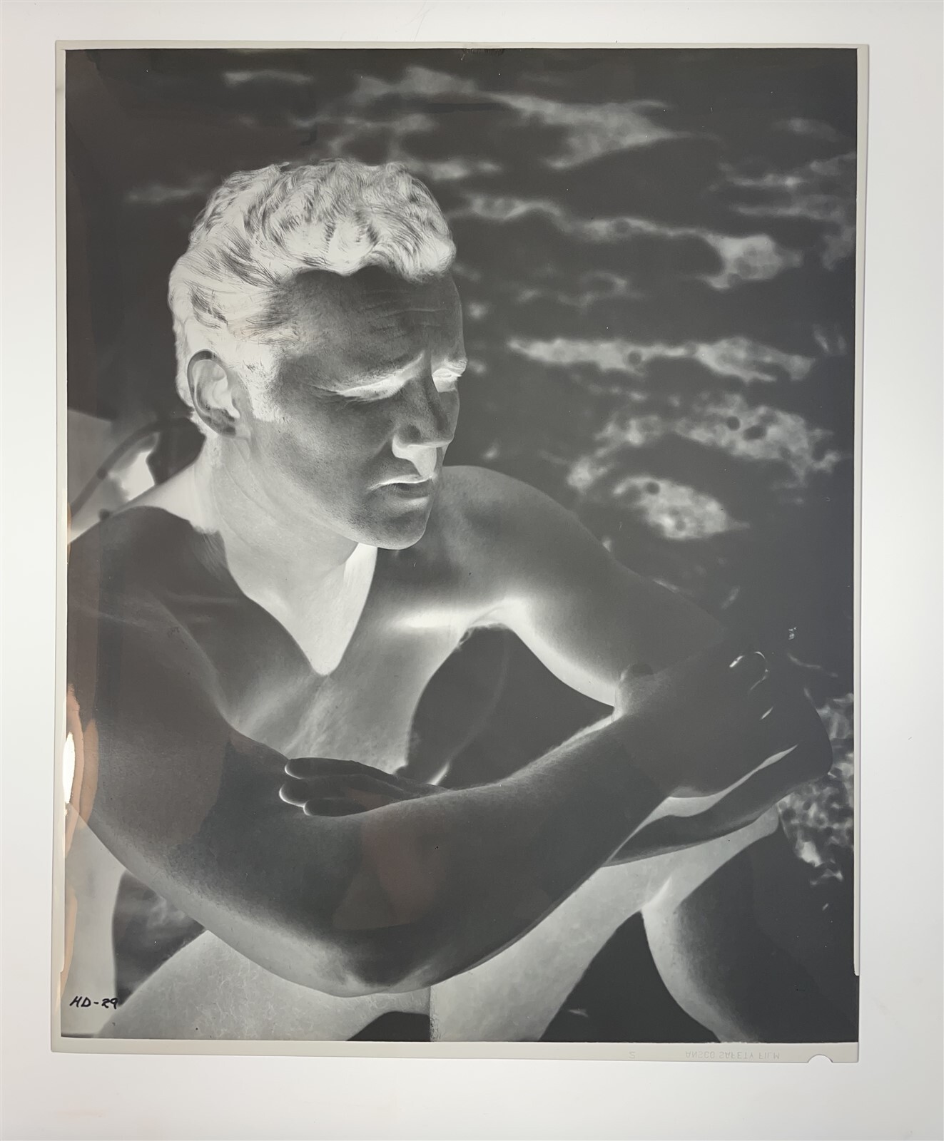 Howard Duff Barechested on beach Photo Shoot 1940's Vintage Studio 8x10 Negative This is a vintage studio or photographer's 8x10 inch black and white photographic negative from that was from the famed Marvin Paige Motion Picture and Television Research Archive. Marvin Paige was a renowned Hollywood casting agent who had worked on such productions as 'Breakfast at Tiffany's and 'Planet of the Apes' and a film historian who had amassed a huge archive of movie and television images and memorabilia . This vintage negative was created from the original camera negative by the studio or photographer in order to make prints and use for publications. This is a real collector's item and would make superb quality photographs or prints. This would also be a great addition to any collection or image archive. This black and white photographic negative is in Excellent condition. This collector's item is being sold from one collector to another, no rights are given or implied. Silver Screen Mementos are gradually releasing from their vast archives thousands of original photographs, transparencies, negatives, slides, lobby cards and other movie or television memorabilia.