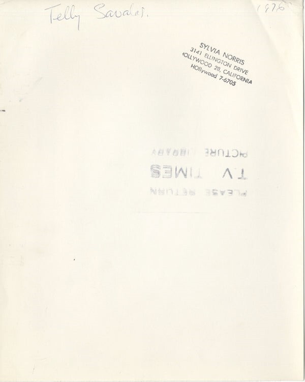 Telly Savalas 1970's Kojak Sexy Open Shirt with gold chains Original 8x10 Photo Stamped VG/Near Mint Condition This item is an ORIGINAL 8x10 photo from the historic archives of Silver Screen Mementos. This original photograph was made in the actual year the film, television show or event was produced. The movie studios produced publicity photographs for distribution to the press, photo agencies and publicity departments to advertise the film/tv show or event. Very often original photos have press release information on the reverse of the photo - movie credits, description of the scene, event and people involved. This is a historic piece of cinema art and is being offered from one collector to another, no rights given or implied. Silver Screen are gradually releasing thousands of Original Photographs, Transparencies, Negatives, Lobby Cards, Posters, Magazines and other memorabilia from our historic archive.
