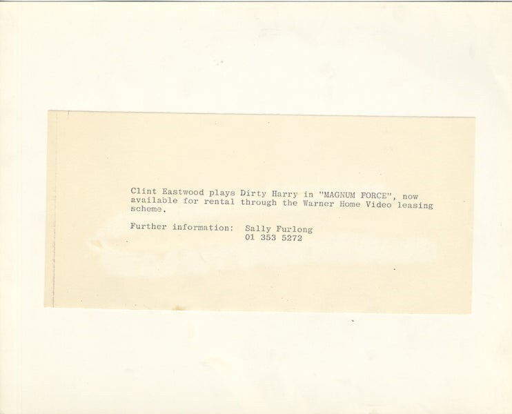 Clint Eastwood Magnum Force 1973 Dirty Harry Cockpit Scene Robert V. R. Ware Original 8x10 Photo with Snipe Near Mint Condition This item is an ORIGINAL 8x10 photo from the historic archives of Silver Screen Mementos. This original photograph was made in the actual year the film, television show or event was produced. The movie studios produced publicity photographs for distribution to the press, photo agencies and publicity departments to advertise the film/tv show or event. Very often original photos have press release information on the reverse of the photo - movie credits, description of the scene, event and people involved. This is a historic piece of cinema art and is being offered from one collector to another, no rights given or implied. Silver Screen are gradually releasing thousands of Original Photographs, Transparencies, Negatives, Lobby Cards, Posters, Magazines and other memorabilia from our historic archive.