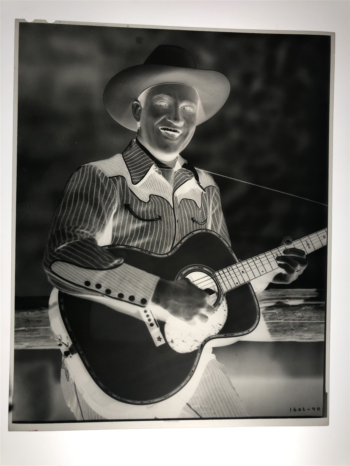 Gene Autry 1947 Twilight of the Rio Grande playing guitar Vintage 8x10 Studio Duplicate Negative This is a vintage studio or photographer's 8x10 inch black and white photographic negative from that was from the famed Marvin Paige Motion Picture and Television Research Archive. Marvin Paige was a renowned Hollywood casting agent who had worked on such productions as 'Breakfast at Tiffany's and 'Planet of the Apes' and a film historian who had amassed a huge archive of movie and television images and memorabilia . This vintage negative was created from the original camera negative by the studio or photographer in order to make prints and use for publications. This is a real collector's item and would make superb quality photographs or prints. This would also be a great addition to any collection or image archive. This black and white photographic negative is in Excellent condition. This collector's item is being sold from one collector to another, no rights are given or implied. Silver Screen Mementos are gradually releasing from their vast archives thousands of original photographs, transparencies, negatives, slides, lobby cards and other movie or television memorabilia.