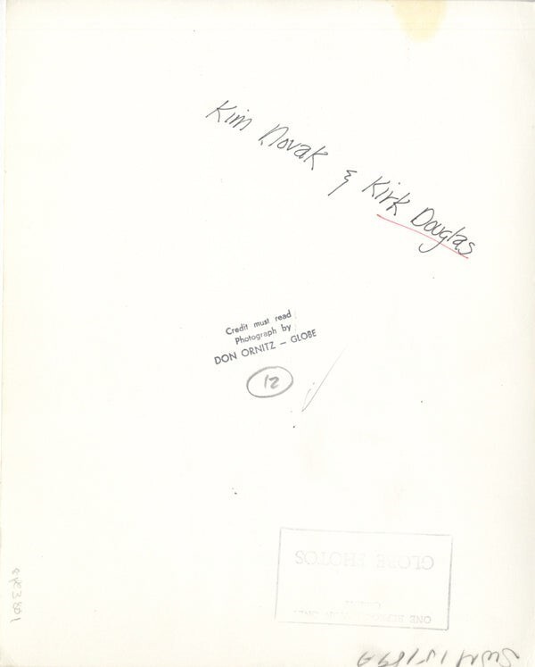 Strangers When We Meet 1960 Kim Novak, Kirk Douglas running on beach from the crashing surf Original 7x9 approx Double Weight Silver Gelatin Photo Stamped VG/Near Mint Condition This item is an ORIGINAL 8x10 photo from the historic archives of Silver Screen Mementos. This original photograph was made in the actual year the film, television show or event was produced. The movie studios produced publicity photographs for distribution to the press, photo agencies and publicity departments to advertise the film/tv show or event. Very often original photos have press release information on the reverse of the photo - movie credits, description of the scene, event and people involved. This is a historic piece of cinema art and is being offered from one collector to another, no rights given or implied. Silver Screen are gradually releasing thousands of Original Photographs, Transparencies, Negatives, Lobby Cards, Posters, Magazines and other memorabilia from our historic archive.