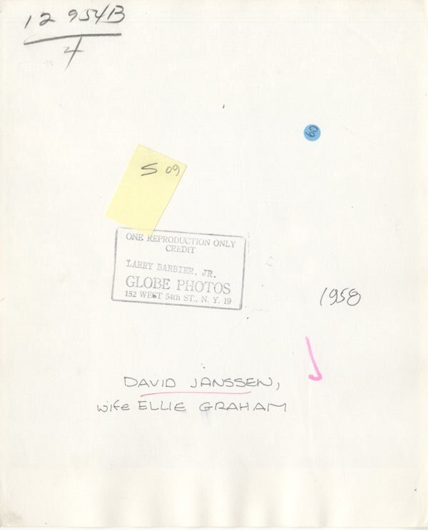 David Janssen The Fugitive star & wife Ellie 1958 backyard BBQ Original 8x10 Photo Stamped VG/Near Mint Condition This item is an ORIGINAL 8x10 photo from the historic archives of Silver Screen Mementos. This original photograph was made in the actual year the film, television show or event was produced. The movie studios produced publicity photographs for distribution to the press, photo agencies and publicity departments to advertise the film/tv show or event. Very often original photos have press release information on the reverse of the photo - movie credits, description of the scene, event and people involved. This is a historic piece of cinema art and is being offered from one collector to another, no rights given or implied. Silver Screen are gradually releasing thousands of Original Photographs, Transparencies, Negatives, Lobby Cards, Posters, Magazines and other memorabilia from our historic archive.