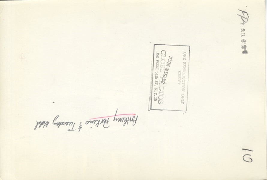 Anthony Perkins, Tuesday Weld 1950's Studio Publicity Original 7x10 approx Photo Stamped VG Condition This item is an ORIGINAL 8x10 photo from the historic archives of Silver Screen Mementos. This original photograph was made in the actual year the film, television show or event was produced. The movie studios produced publicity photographs for distribution to the press, photo agencies and publicity departments to advertise the film/tv show or event. Very often original photos have press release information on the reverse of the photo - movie credits, description of the scene, event and people involved. This is a historic piece of cinema art and is being offered from one collector to another, no rights given or implied. Silver Screen are gradually releasing thousands of Original Photographs, Transparencies, Negatives, Lobby Cards, Posters, Magazines and other memorabilia from our historic archive.