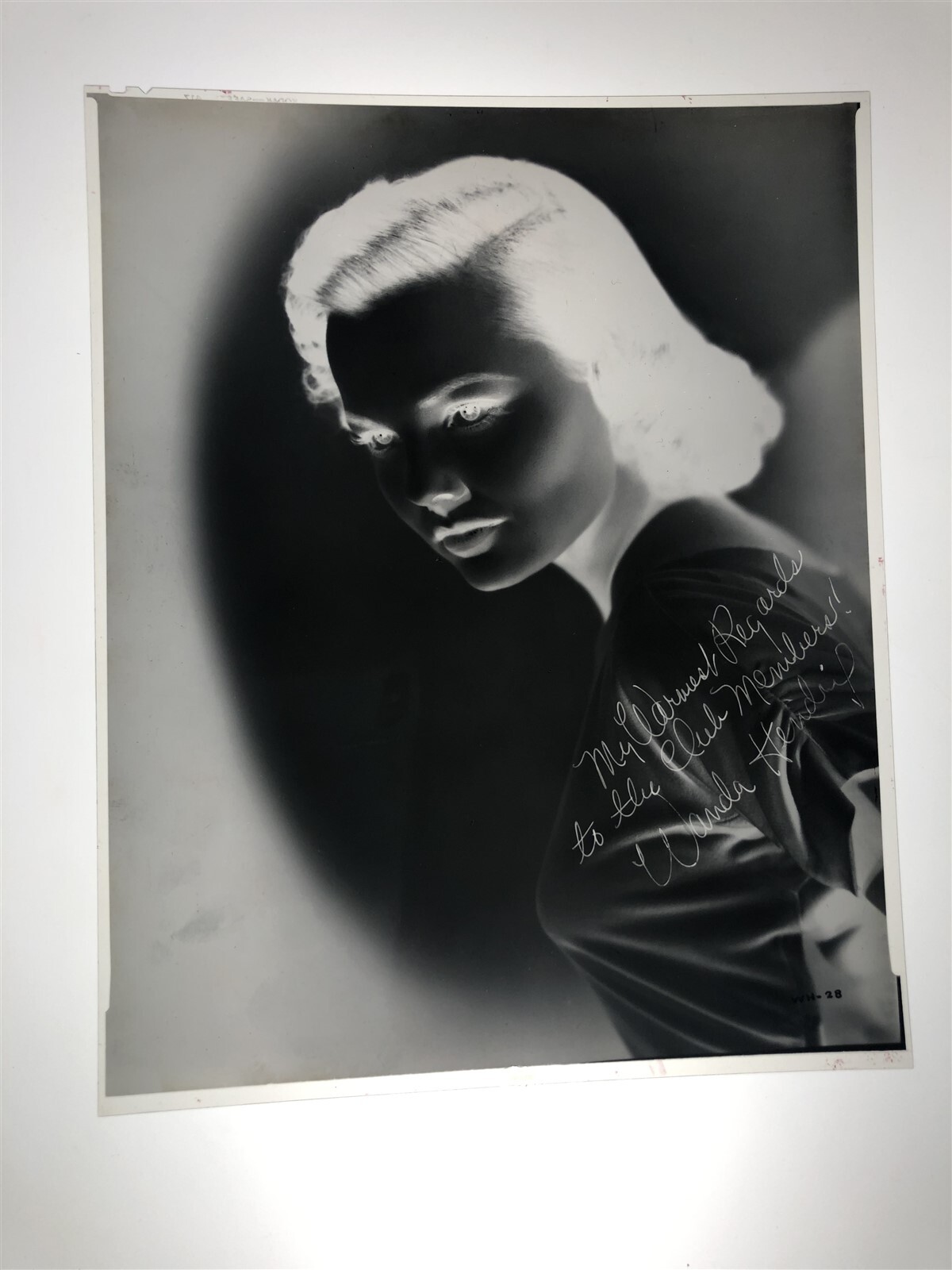 Wanda Hendrix Facsimile Autograph Photo 1940's Vintage 8x10 Studio Duplicate Negative , This was used to make photos to send to fans and is inscribed "My Warmest Regards to the Club members Wanda Hendrix" This is a vintage studio or photographer's 8x10 inch black and white photographic negative from that was from the famed Marvin Paige Motion Picture and Television Research Archive. Marvin Paige was a renowned Hollywood casting agent who had worked on such productions as 'Breakfast at Tiffany's and 'Planet of the Apes' and a film historian who had amassed a huge archive of movie and television images and memorabilia . This vintage negative was created from the original camera negative by the studio or photographer in order to make prints and use for publications. This is a real collector's item and would make superb quality photographs or prints. This would also be a great addition to any collection or image archive. This black and white photographic negative is in Excellent condition. This collector's item is being sold from one collector to another, no rights are given or implied. Silver Screen Mementos are gradually releasing from their vast archives thousands of original photographs, transparencies, negatives, slides, lobby cards and other movie or television memorabilia.