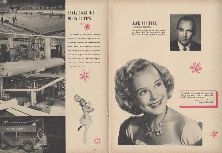 Sonja Henie 1953 Ice Revue Vintage original Program Brochure Photos Rare 24 pages with pictures articles and info on the ice skating show. VG/Near Mint Condition We are gradually releasing from our historic archives original photographs, negatives, transparency, slides, movie posters, magazines, books, press books, pins, autographs, trading cards, press badges and other rare collectors items.
