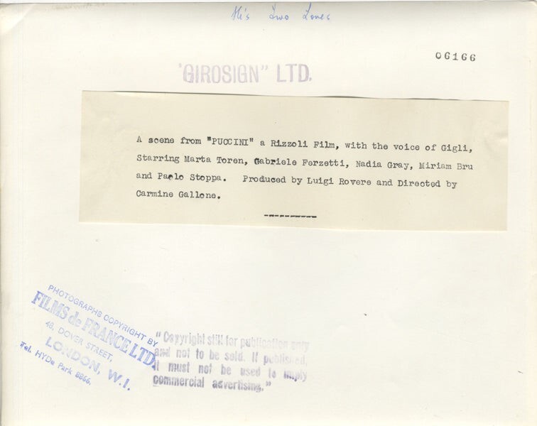 Puccini 1953 Gabriele Ferzetti Opera House audience Original 8x10 Photo Stamped with Snipe VG/Near Mint Condition This item is an ORIGINAL 8x10 photo from the historic archives of Silver Screen Mementos. This original photograph was made in the actual year the film, television show or event was produced. The movie studios produced publicity photographs for distribution to the press, photo agencies and publicity departments to advertise the film/tv show or event. Very often original photos have press release information on the reverse of the photo - movie credits, description of the scene, event and people involved. This is a historic piece of cinema art and is being offered from one collector to another, no rights given or implied. Silver Screen are gradually releasing thousands of Original Photographs, Transparencies, Negatives, Lobby Cards, Posters, Magazines and other memorabilia from our historic archive.
