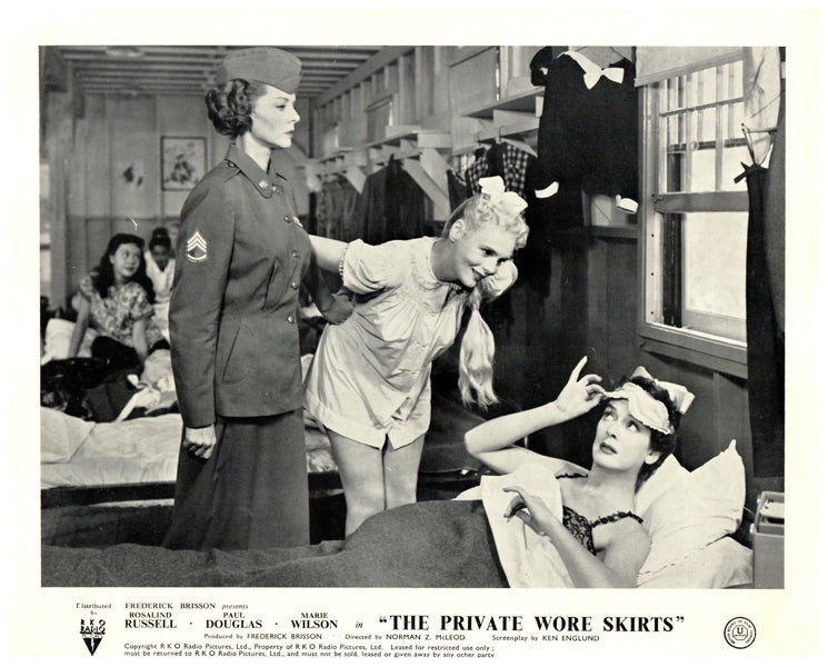 The Private Wore Skirts A.K.A. Never Wave at a WAC 1953 Original Lobby Card Rosalind Russell, Paul Douglas, Marie Wilson VG Condition Silver Screen Mementos are pleased to be able to offer this authentic original Lobby Card measuring 8x10 inches. This lobby card is from Great Britain and was printed during the actual year the film was released in movie theaters. The lobby card (also known as Front of House/ FOH card in the UK) was created by the film studios to publicize the movie and was intended for display outside the movie theatre in special glass display boxes. These are NOT reproductions! You are looking at a truly original piece of cinema art, a genuine collector's item. We have a huge archive of over 250,000 original lobby cards, mostly from the 1930's to the 1980's. We will be releasing many more rare gems from our vast collection, which will include lobby cards, original photographs, movie stills, magazines, brochures negatives, transparencies, slides and other collectible items of movie memorabilia.