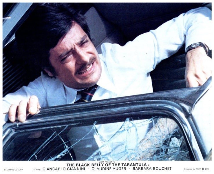 Black Belly of the Tarantuala 1971 Original Lobby Card Giancarlo Giannini, Claudine Auger, Barbara Bouchet and Barbara Bach in cult Italian Giallo film VG/Near Mint Condition Silver Screen Mementos are pleased to be able to offer this authentic original Lobby Card measuring 8x10 inches. This lobby card is from Great Britain and was printed during the actual year the film was released in movie theaters. The lobby card (also known as Front of House/ FOH card in the UK) was created by the film studios to publicize the movie and was intended for display outside the movie theatre in special glass display boxes. These are NOT reproductions! You are looking at a truly original piece of cinema art, a genuine collector's item. We have a huge archive of over 250,000 original lobby cards, mostly from the 1930's to the 1980's. We will be releasing many more rare gems from our vast collection, which will include lobby cards, original photographs, movie stills, magazines, brochures negatives, transparencies, slides and other collectible items of movie memorabilia.