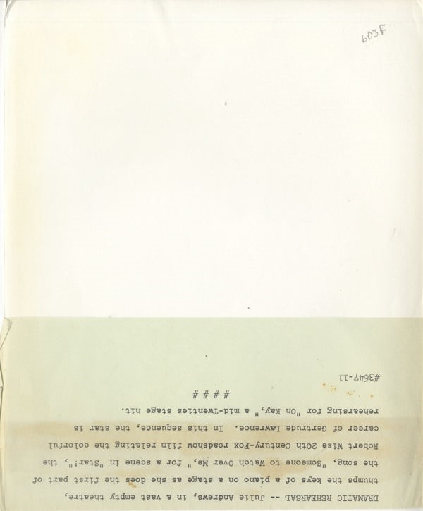 Julie Andrews Star! 1968 Someone to Watch Over Me Original 8x10 Photo with Snipe VG Condition This item is an ORIGINAL 8x10 photo from the historic archives of Silver Screen Mementos. This original photograph was made in the actual year the film, television show or event was produced. The movie studios produced publicity photographs for distribution to the press, photo agencies and publicity departments to advertise the film/tv show or event. Very often original photos have press release information on the reverse of the photo - movie credits, description of the scene, event and people involved. This is a historic piece of cinema art and is being offered from one collector to another, no rights given or implied. Silver Screen are gradually releasing thousands of Original Photographs, Transparencies, Negatives, Lobby Cards, Posters, Magazines and other memorabilia from our historic archive.