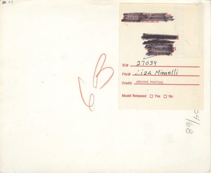 Judy Garland, Liza Minnelli 1960's Rare Original 8x10 Silver Gelatin Photo Stamped VG Condition This item is an ORIGINAL 8x10 photo from the historic archives of Silver Screen Mementos. This original photograph was made in the actual year the film, television show or event was produced. The movie studios produced publicity photographs for distribution to the press, photo agencies and publicity departments to advertise the film/tv show or event. Very often original photos have press release information on the reverse of the photo - movie credits, description of the scene, event and people involved. This is a historic piece of cinema art and is being offered from one collector to another, no rights given or implied. Silver Screen are gradually releasing thousands of Original Photographs, Transparencies, Negatives, Lobby Cards, Posters, Magazines and other memorabilia from our historic archive.