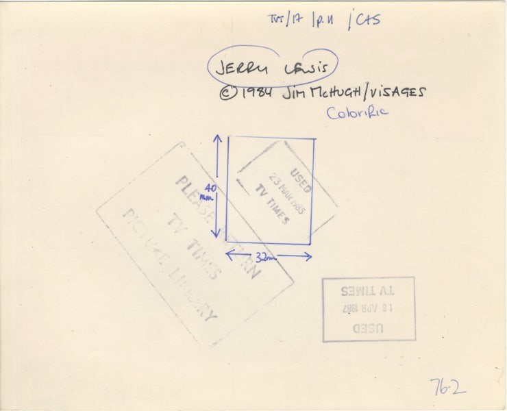 Jerry Lewis Iconic Comedian 1984 Portrait with Wide Open Mouth Original 8x10 Photo Stamped Good/VG Condition (editing pen marks) This item is an ORIGINAL 8x10 photo from the historic archives of Silver Screen Mementos. This original photograph was made in the actual year the film, television show or event was produced. The movie studios produced publicity photographs for distribution to the press, photo agencies and publicity departments to advertise the film/tv show or event. Very often original photos have press release information on the reverse of the photo - movie credits, description of the scene, event and people involved. This is a historic piece of cinema art and is being offered from one collector to another, no rights given or implied. Silver Screen are gradually releasing thousands of Original Photographs, Transparencies, Negatives, Lobby Cards, Posters, Magazines and other memorabilia from our historic archive.