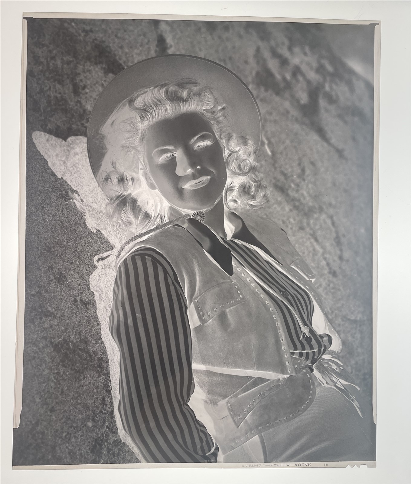 Nan Leslie Vintage 8x10 Studio Negative 1940's Western Glamour Photo Shoot This is a vintage studio or photographer's 8x10 inch black and white photographic negative from that was from the famed Marvin Paige Motion Picture and Television Research Archive. Marvin Paige was a renowned Hollywood casting agent who had worked on such productions as 'Breakfast at Tiffany's and 'Planet of the Apes' and a film historian who had amassed a huge archive of movie and television images and memorabilia . This vintage negative was created from the original camera negative by the studio or photographer in order to make prints and use for publications. This is a real collector's item and would make superb quality photographs or prints. This would also be a great addition to any collection or image archive. This black and white photographic negative is in Excellent condition. This collector's item is being sold from one collector to another, no rights are given or implied. Silver Screen Mementos are gradually releasing from their vast archives thousands of original photographs, transparencies, negatives, slides, lobby cards and other movie or television memorabilia.