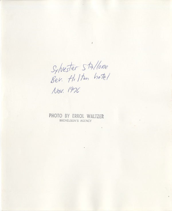 Sylvester Stallone Original 8x10 Photo Candid 1976 Beverly Hilton Hotel Stamped VG/Near Mint Condition This item is an ORIGINAL 8x10 photo from the historic archives of Silver Screen Mementos. This original photograph was made in the actual year the film, television show or event was produced. The movie studios produced publicity photographs for distribution to the press, photo agencies and publicity departments to advertise the film/tv show or event. Very often original photos have press release information on the reverse of the photo - movie credits, description of the scene, event and people involved. This is a historic piece of cinema art and is being offered from one collector to another, no rights given or implied. Silver Screen are gradually releasing thousands of Original Photographs, Transparencies, Negatives, Lobby Cards, Posters, Magazines and other memorabilia from our historic archive.
