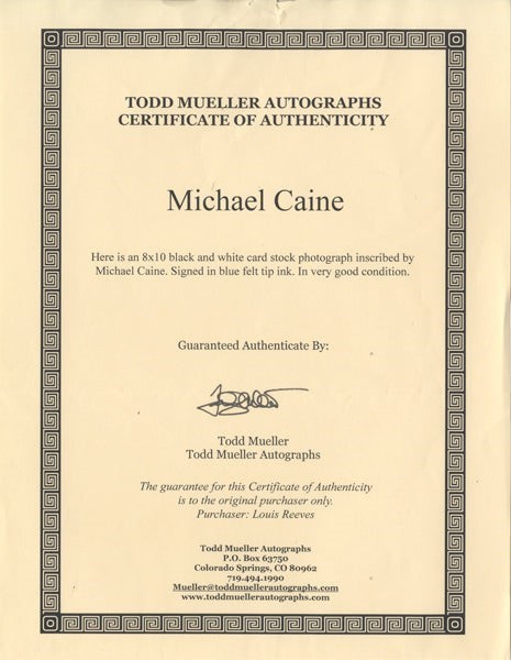 Michael Caine Original Autograph Signed Double Weight Silver Gelatin 8x10 Photo, inscribed "To Doug, Michael Caine" - Near Mint Condition This is an authentic vintage autographed item hand signed by the celebrity , not a copy. Silver Screen are gradually releasing thousands of Original Photographs, Transparencies, Negatives, Lobby Cards, Posters, Magazines and other memorabilia from our historic archive.