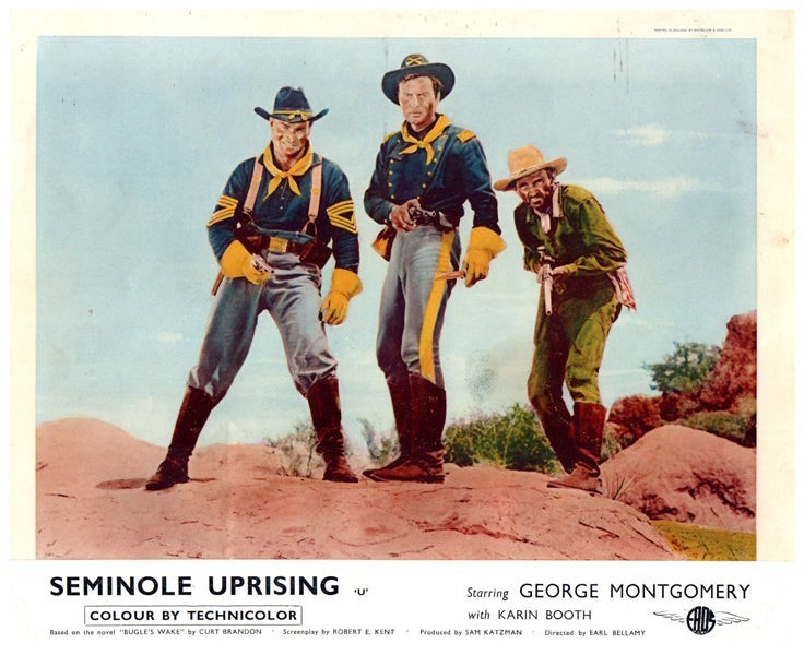 Seminole Uprising Original Lobby Card George Montgomery, Karin Booth, William Fawcett, Steven Ritch, Rory Mallinson, John Pickford, Rus Conklin, Steve Carruthers, 1955 Western VG Condition Silver Screen Mementos are pleased to be able to offer this authentic original Lobby Card measuring 8x10 inches. This lobby card is from Great Britain and was printed during the actual year the film was released in movie theaters. The lobby card (also known as Front of House/ FOH card in the UK) was created by the film studios to publicize the movie and was intended for display outside the movie theatre in special glass display boxes. These are NOT reproductions! You are looking at a truly original piece of cinema art, a genuine collector's item. We have a huge archive of over 250,000 original lobby cards, mostly from the 1930's to the 1980's. We will be releasing many more rare gems from our vast collection, which will include lobby cards, original photographs, movie stills, magazines, brochures negatives, transparencies, slides and other collectible items of movie memorabilia.