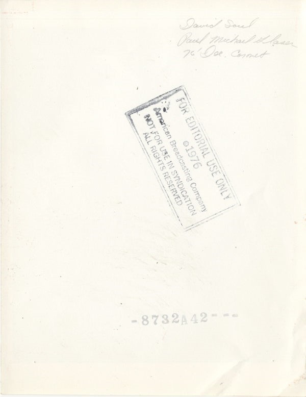 Starsky and Hutch Original 7x9 Photo David Soul, Paul Michael Glaser Stamped 1976 VG Condition This item is an ORIGINAL 8x10 photo from the historic archives of Silver Screen Mementos. This original photograph was made in the actual year the film, television show or event was produced. The movie studios produced publicity photographs for distribution to the press, photo agencies and publicity departments to advertise the film/tv show or event. Very often original photos have press release information on the reverse of the photo - movie credits, description of the scene, event and people involved. This is a historic piece of cinema art and is being offered from one collector to another, no rights given or implied. Silver Screen are gradually releasing thousands of Original Photographs, Transparencies, Negatives, Lobby Cards, Posters, Magazines and other memorabilia from our historic archive.