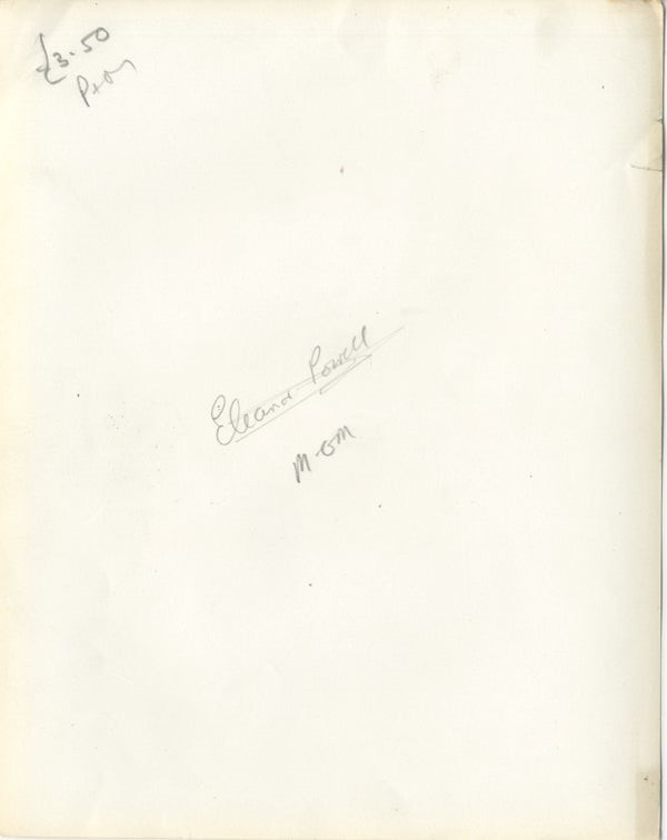 Eleanor Powell 1930's MGM Glamour Portrait Original 8x10 Silver Gelatin Photo VG Condition (1/4"tear left margin no paper loss, wear to corners) This item is an ORIGINAL 8x10 photo from the historic archives of Silver Screen Mementos. This original photograph was made in the actual year the film, television show or event was produced. The movie studios produced publicity photographs for distribution to the press, photo agencies and publicity departments to advertise the film/tv show or event. Very often original photos have press release information on the reverse of the photo - movie credits, description of the scene, event and people involved. This is a historic piece of cinema art and is being offered from one collector to another, no rights given or implied. Silver Screen are gradually releasing thousands of Original Photographs, Transparencies, Negatives, Lobby Cards, Posters, Magazines and other memorabilia from our historic archive.
