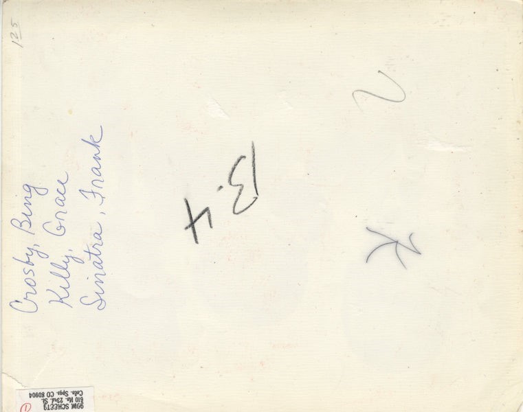 High Society 1956 Bing Crosby, Grace Kelly, Frank Sinatra Original 8x10 Silver Gelatin Photo Good Condition (1"tear left margin no paper loss, surface mark top right corner, wear to edges) This item is an ORIGINAL 8x10 photo from the historic archives of Silver Screen Mementos. This original photograph was made in the actual year the film, television show or event was produced. The movie studios produced publicity photographs for distribution to the press, photo agencies and publicity departments to advertise the film/tv show or event. Very often original photos have press release information on the reverse of the photo - movie credits, description of the scene, event and people involved. This is a historic piece of cinema art and is being offered from one collector to another, no rights given or implied. Silver Screen are gradually releasing thousands of Original Photographs, Transparencies, Negatives, Lobby Cards, Posters, Magazines and other memorabilia from our historic archive.