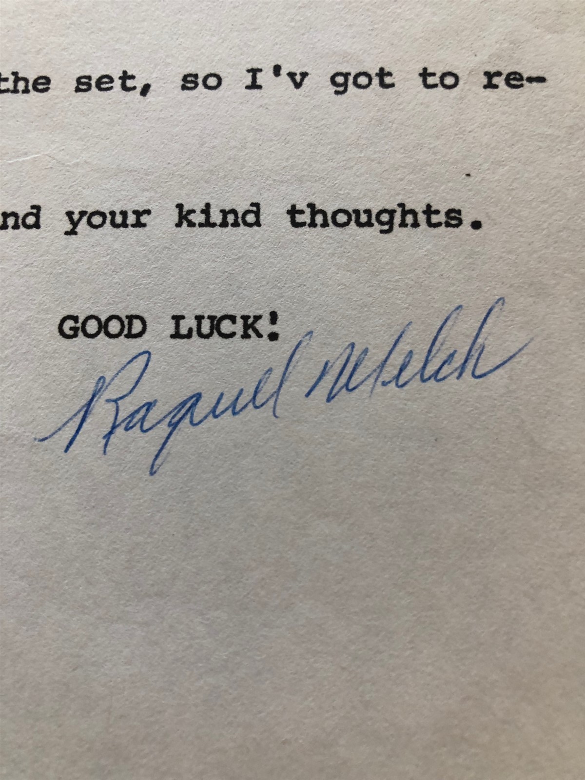 Raquel Welch Autograph Signed Letter from set of Bandolero c 1968 This is an authentic vintage autographed item hand signed by the celebrity , not a copy. Silver Screen are gradually releasing thousands of Original Photographs, Transparencies, Negatives, Lobby Cards, Posters, Magazines and other memorabilia from our historic archive.